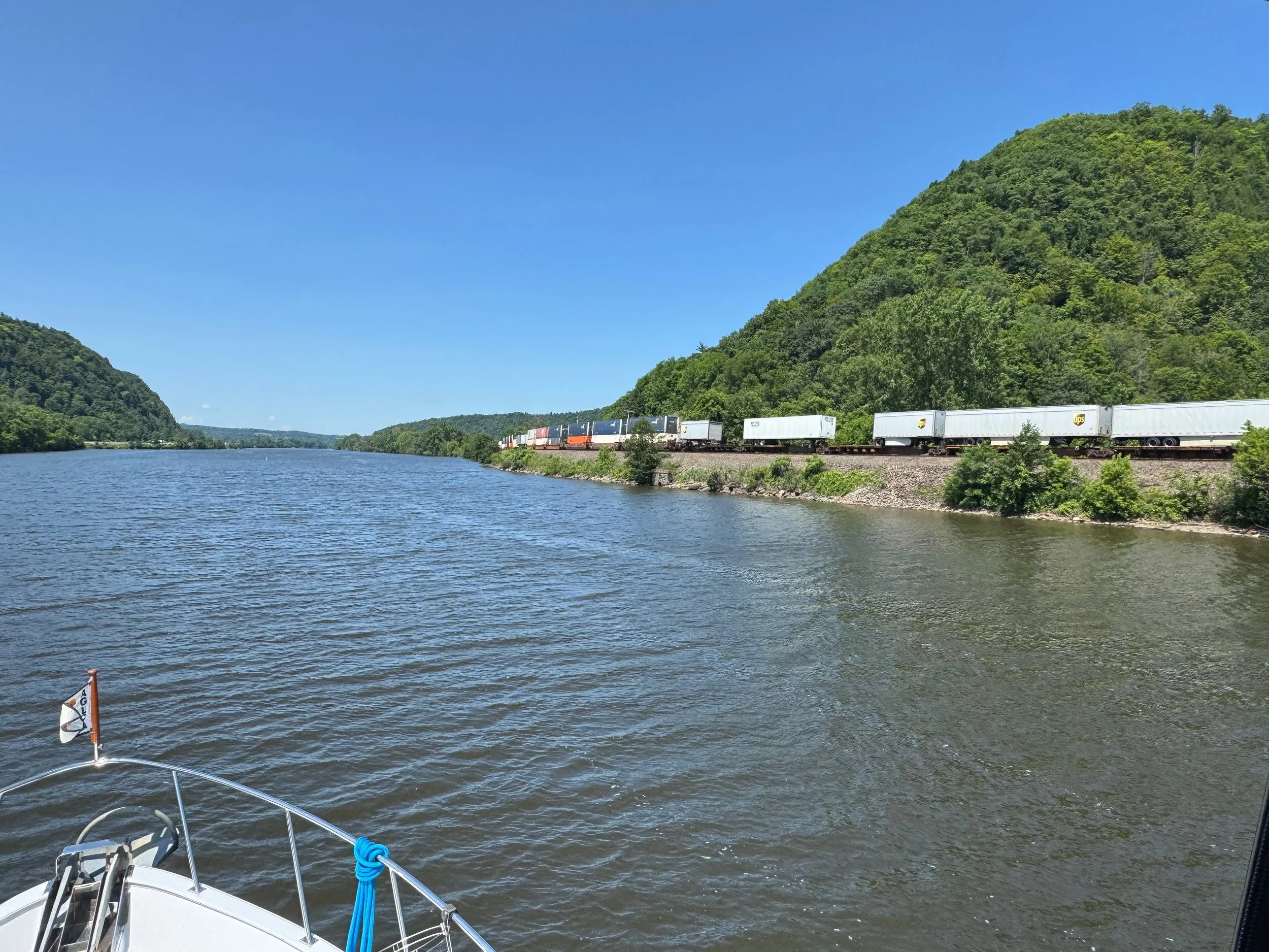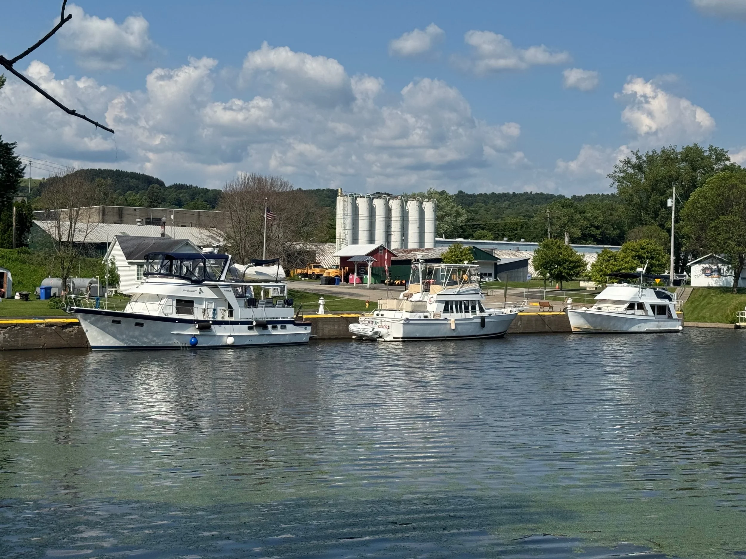 Since there def was not much to see, we took a nap, and then had “docktails” on the park green with our new found bff boat friends, and had a ton of laughs listening to some of the crazy predicaments they had gotten themselves in to on the Loop. Two of our favorites included being inside a lock, grabbing a line, losing control of their boat, twisting completely around in the lock while barely missing the other boats in the lock, and then having to back out of the lock when the gate opened - and going in to Liberty Landing Marina in NYC, hitting the dock when going in, and knocking the engine off their dinghy and watching it quickly sink to the bottom of the Hudson. No saving that … their stories were told. We also passed another boat who had lost its steering inside of a lock, and had to tie up to another boat and raft along side of them to the next marina. We are learning a lot - and it’s never been a dull day!