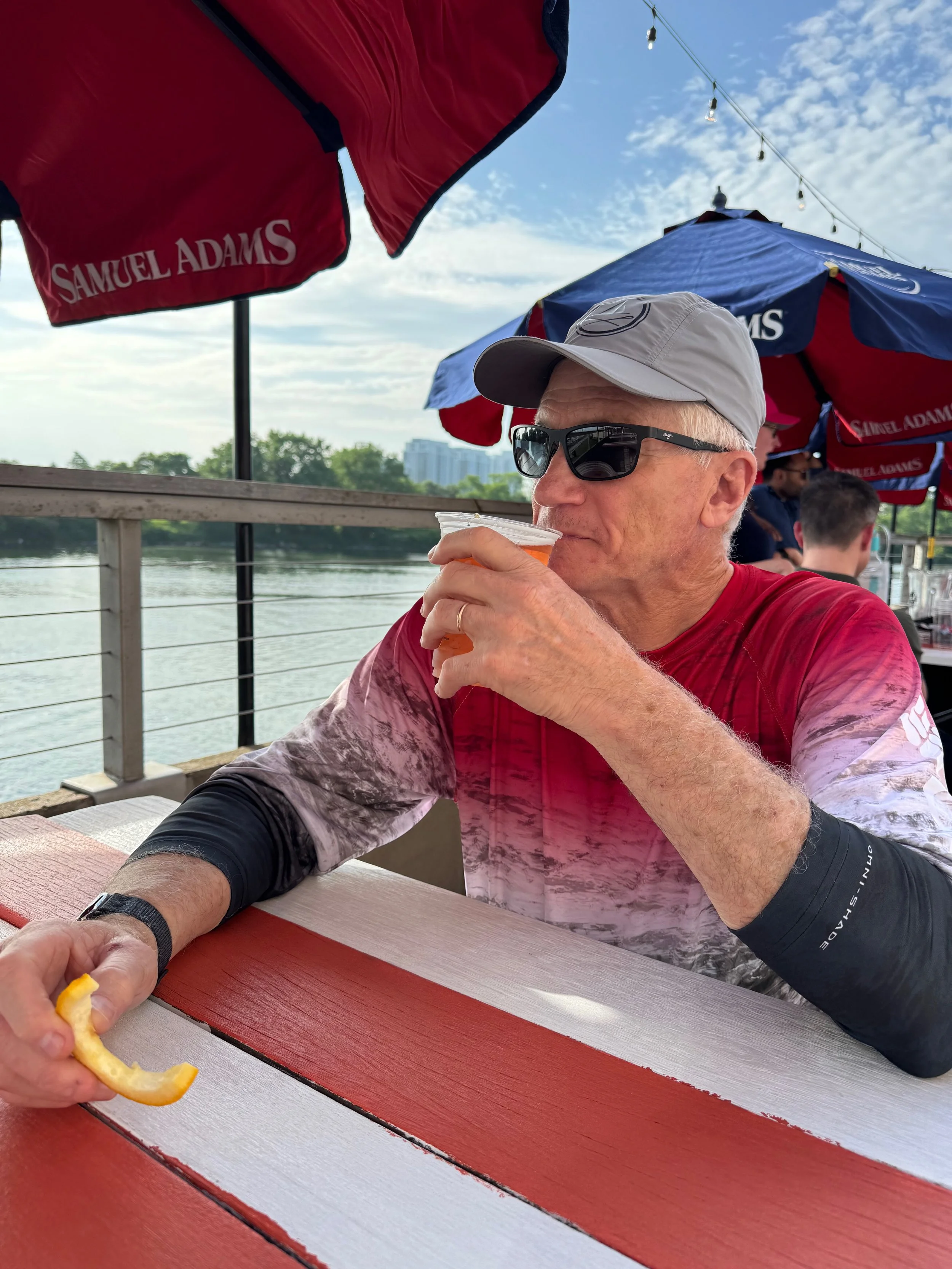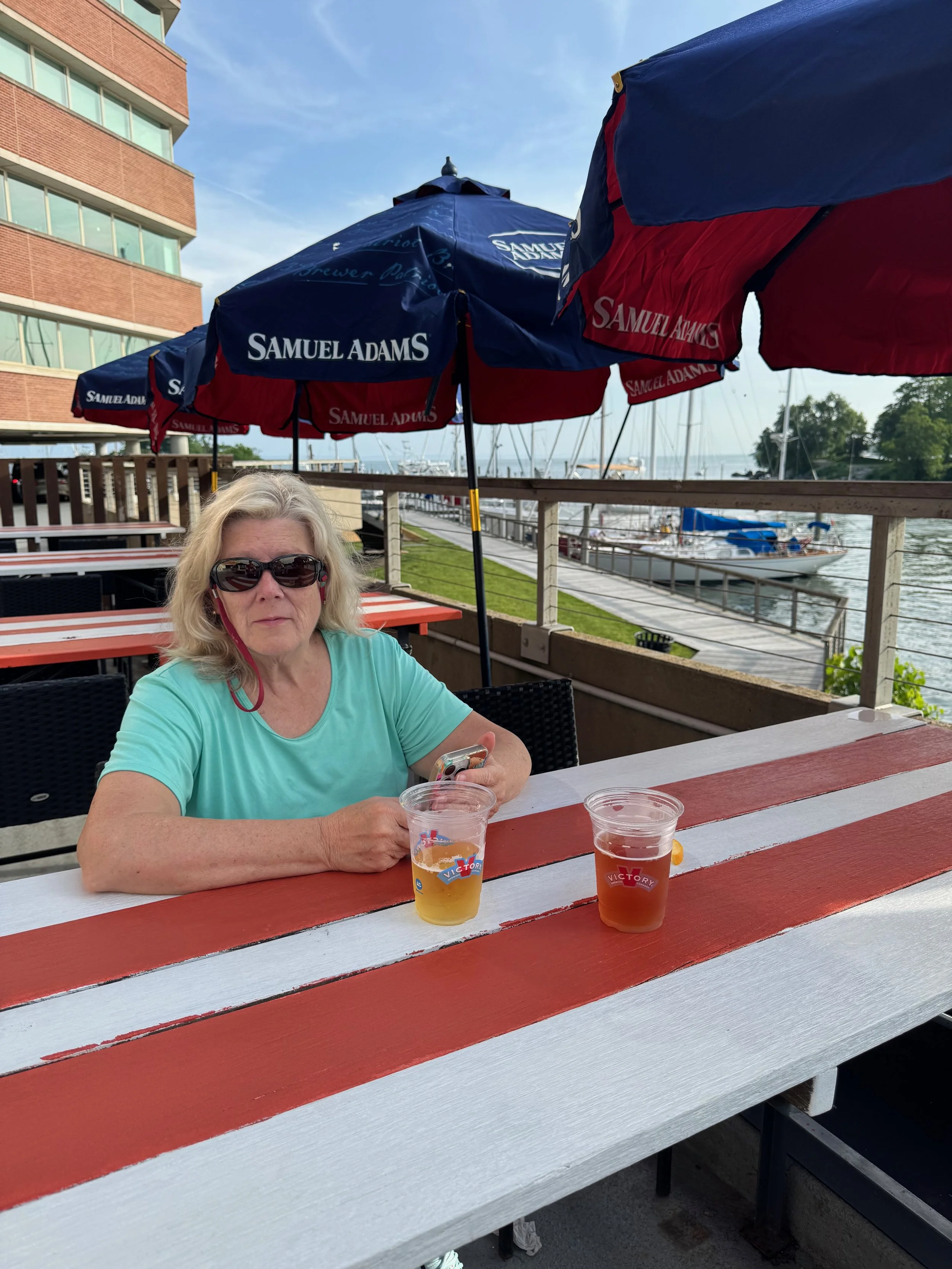 Spent two very uneventful days at the Yacht Haven marina in Stamford erring on the side of caution waiting out a “huge” storm that never materialized! We decided the weather people around there really need to brush up on their storm tracking skills - or maybe they were all laid off by Trump and no one was at NOAA to make an accurate prediction. Anyway, we realized two things 1) we never want to dock our boat in Stamford again as the only thing we could walk to was a beer garden and the Vineyard Vines headquarters bldg. 2) we really like beer gardens! We did meet a guy from Annapolis who was on his way to Block Island for race week. Shockingly, we had a mutual friend - Dixon Smith, a recently retired 3 star Admiral, who use to race with Will on the sailing team at USNA and was a sword bearer in our wedding! It’s such a small world, right?