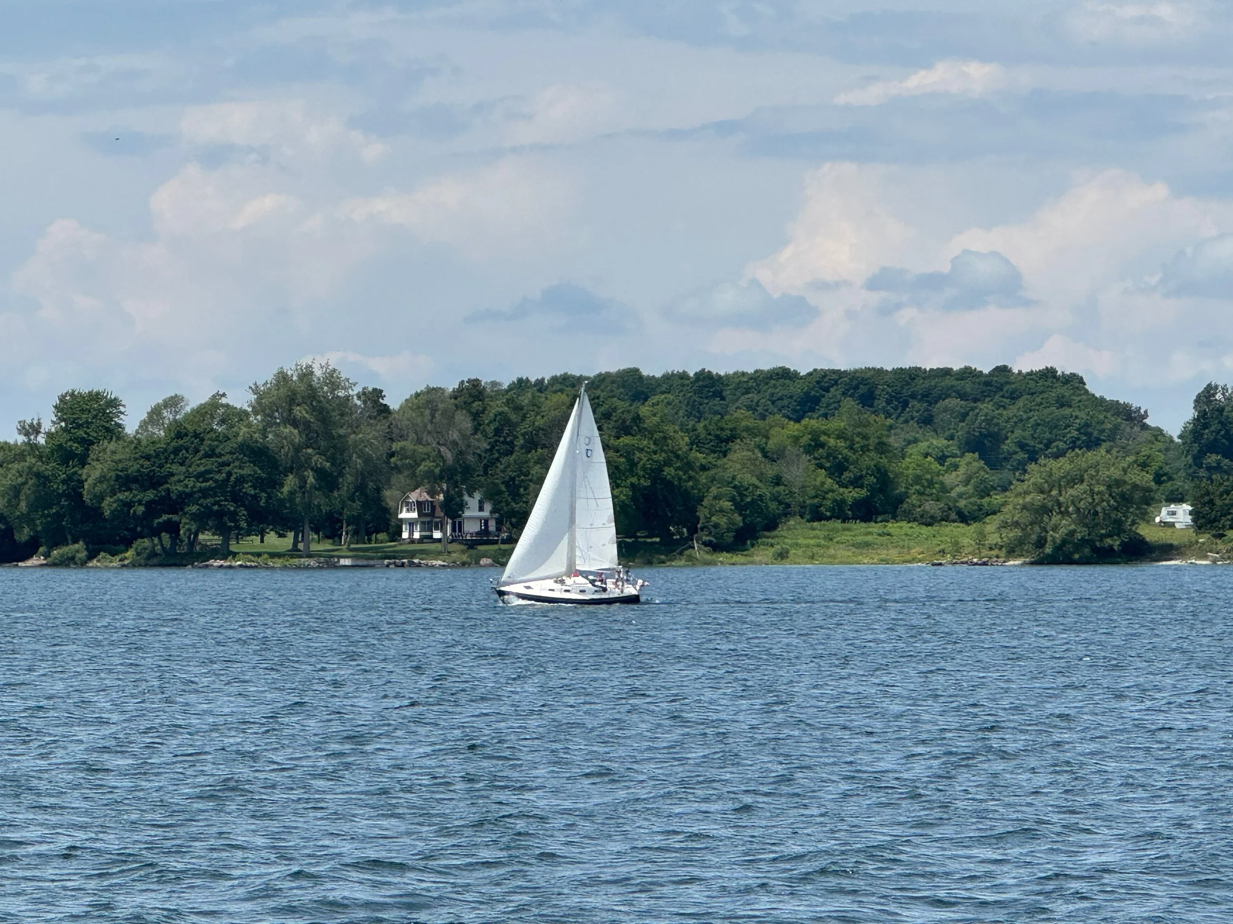 The lake crossing was like gliding on bath water today - Saw a few boats here and there but not much to see except wide horizon until we got to the other side. This section of NY is called the 1000 islands and the water ways are littered with little islands -Some inhabited and others with just greenery. We docked in Clayton at the French Bay Marina, and are staying for two nights in the slip of some friends we made (Gary and Connie)at the Waterford Marina. Clayton is their home port and they had to stay back in Waterford for some boat repairs and kindly offered us their slip for a couple days. 🙏🏻 thank you!