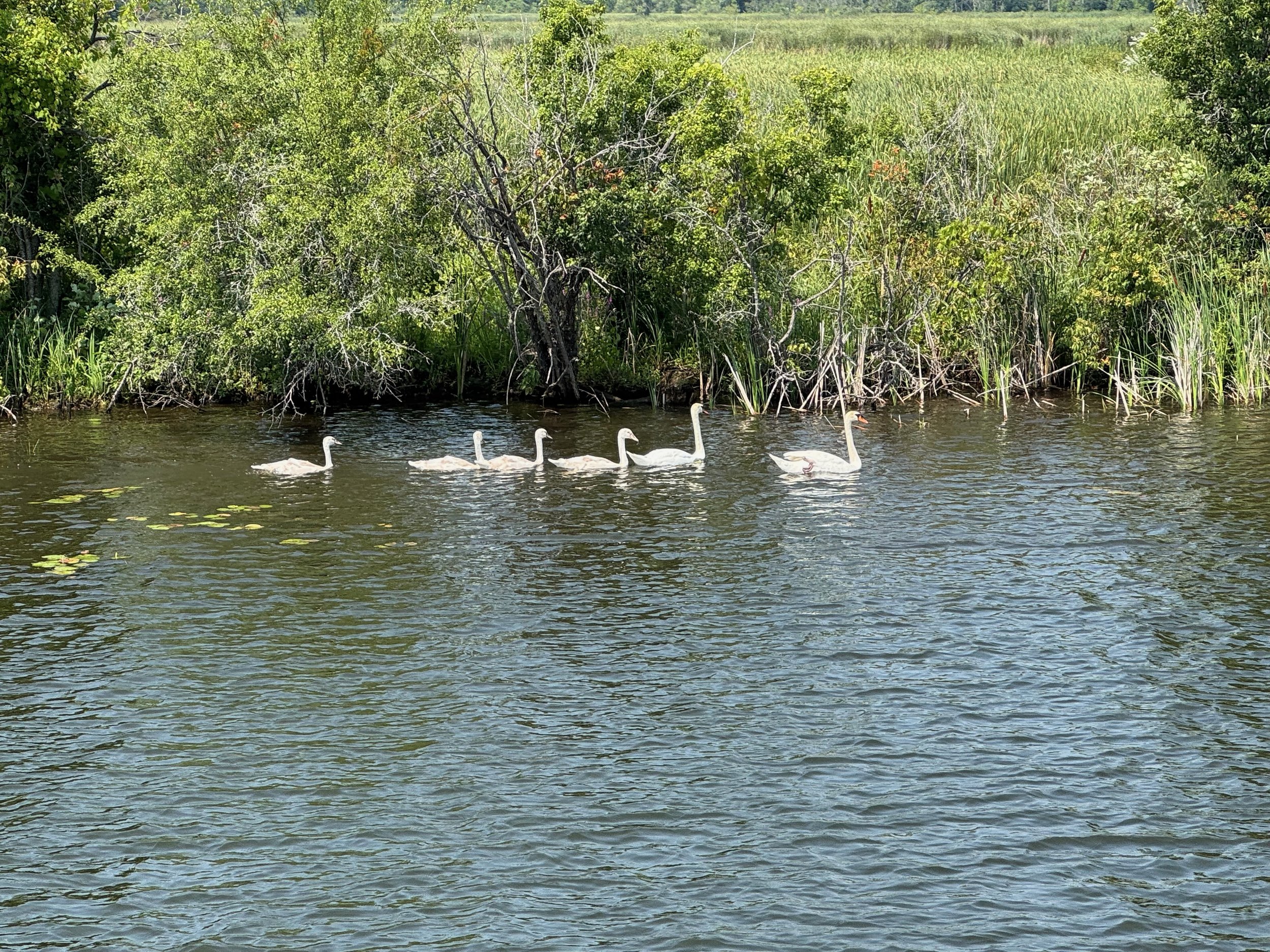 There is wildlife everywhere. From frogs hiding in the grass on a lock ladder to the large grassy marshes with majestic swans and other birds.