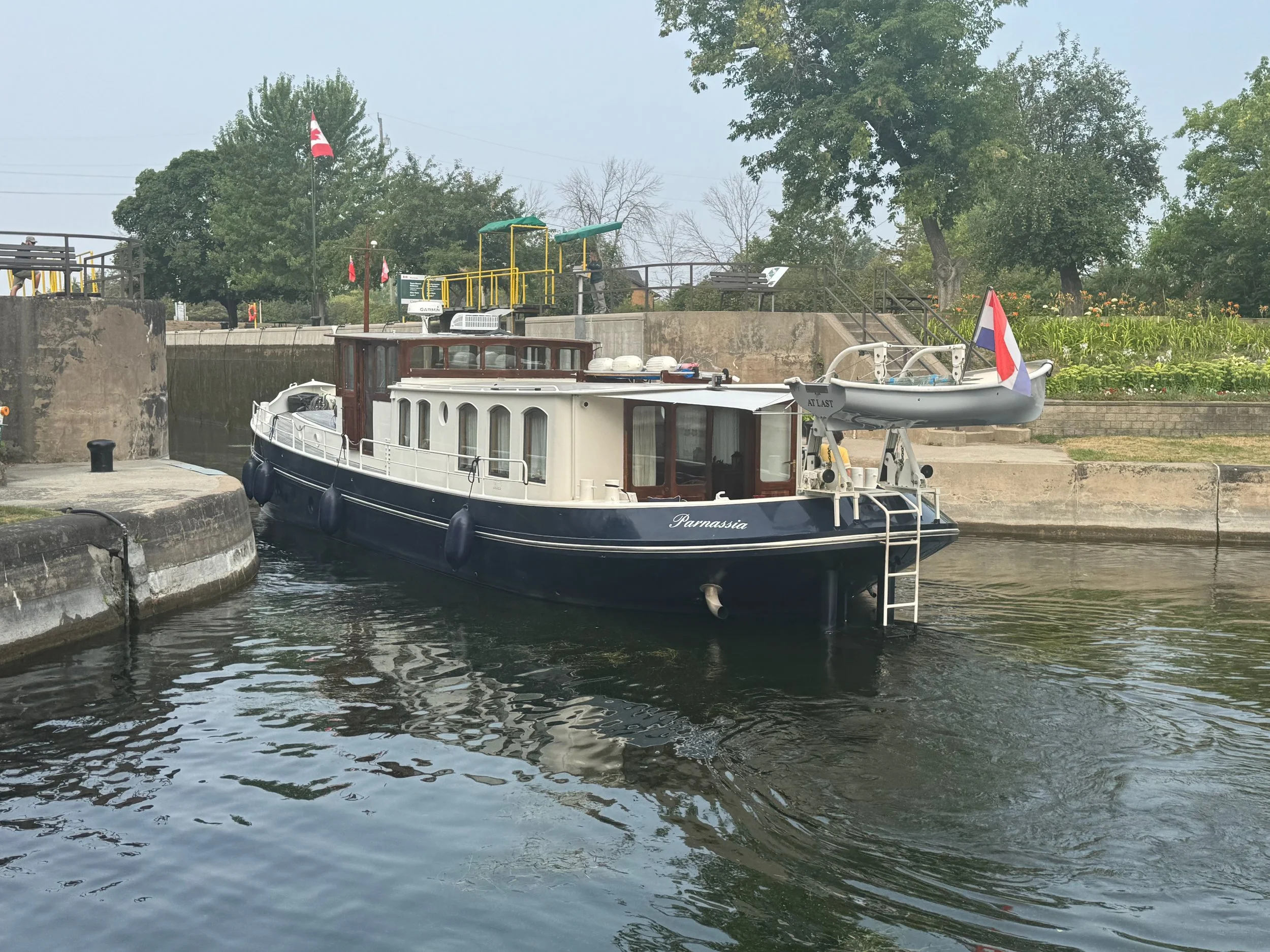Well, we had wanted to go to Frankford, Lock 6, where the Canada Parks has shore power for boats. But, when we got to Lock 7, we found out that Lock 6 was full. So, since we had already completed six locks and had stayed at this nice lock in the shade of a giant willow tree several weeks earlier, we decided to pull over for the night.