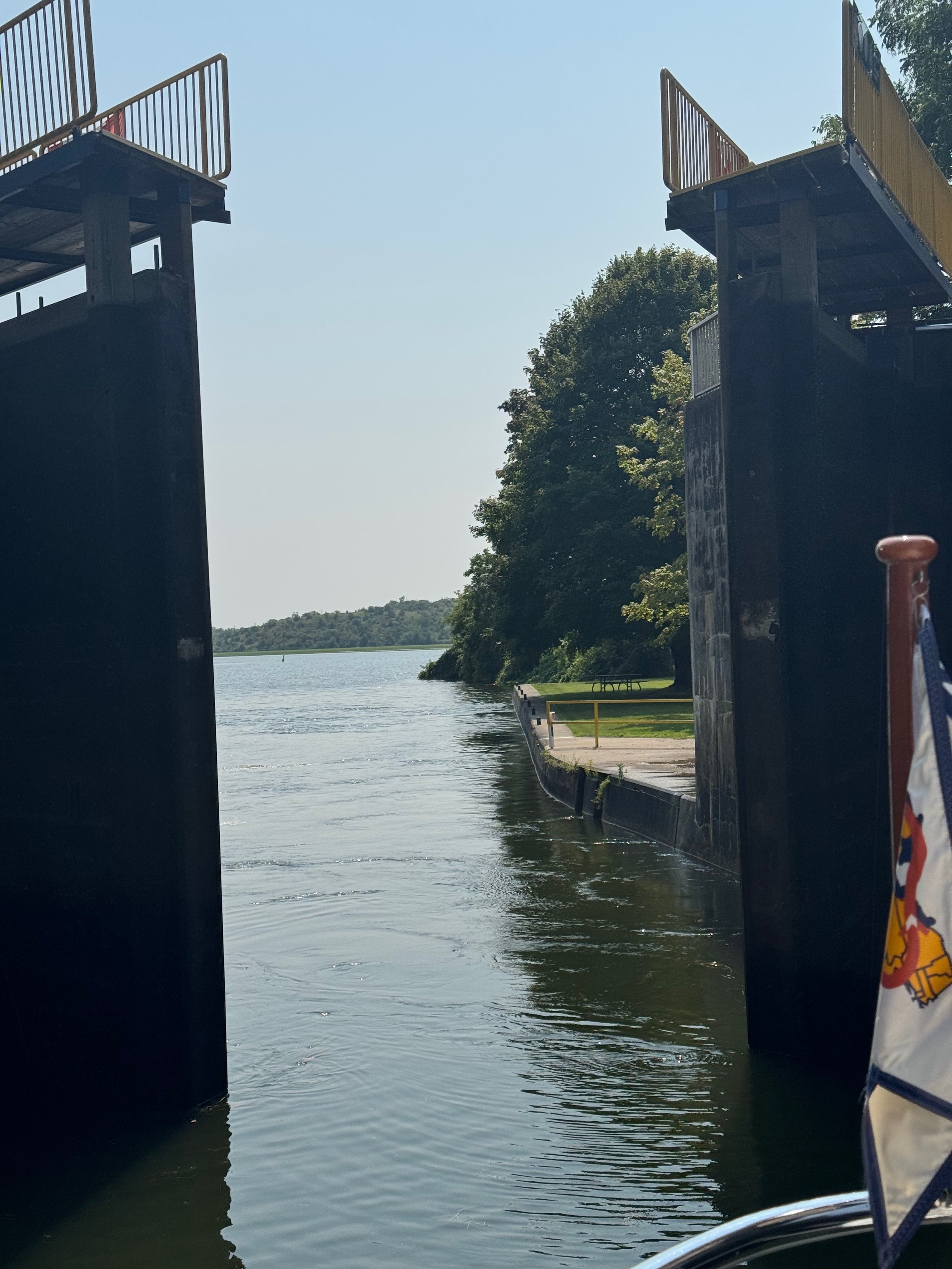 In the morning when we were getting started, the beautiful boat in the pictures came through the lock. Fun to see something different.