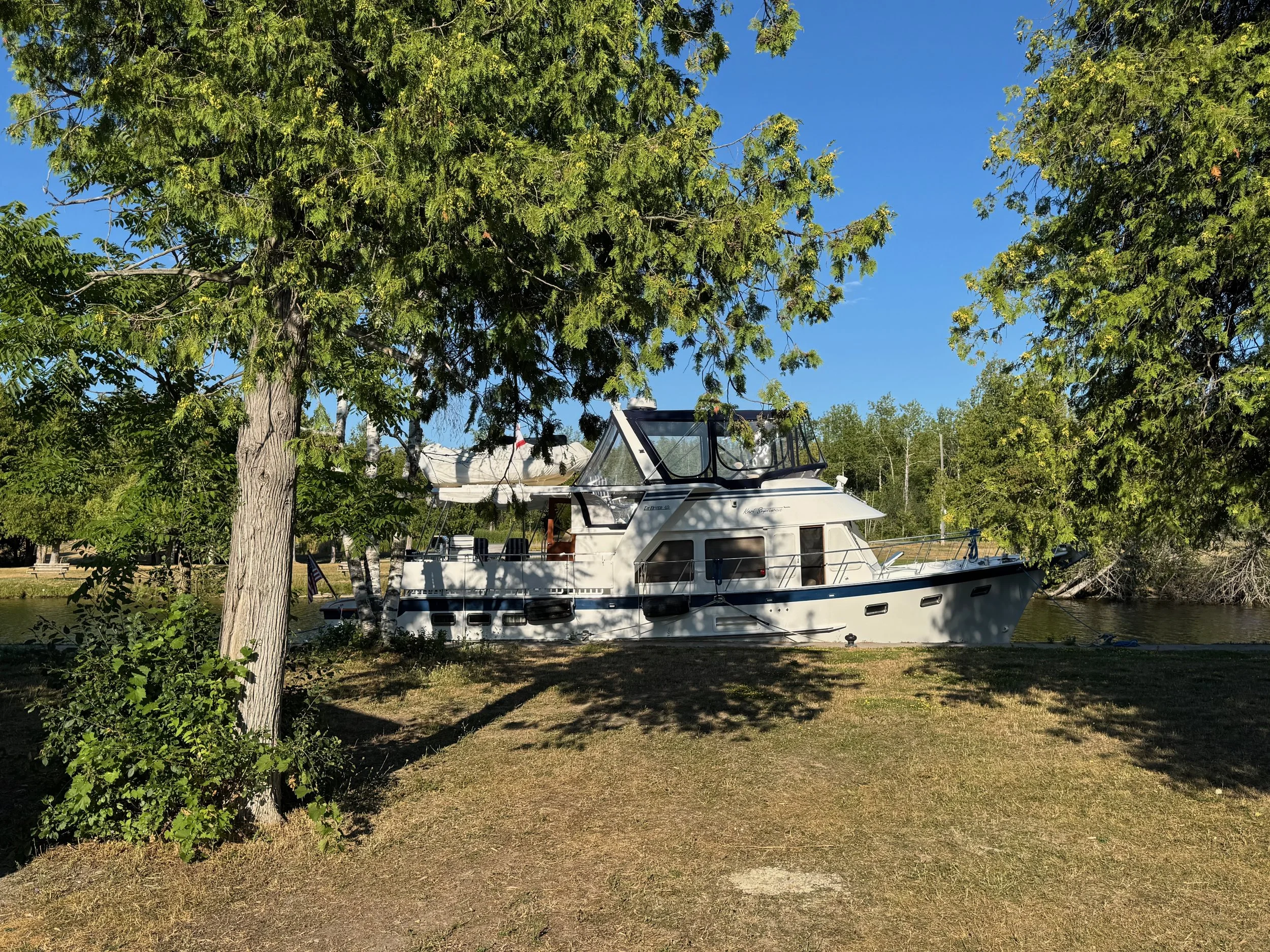 It is a nice stop after the five locks from Young’s Point and a quiet alternative to Peterborough which is very busy and requires transiting three more locks. Each lock adds about 30 minutes to the trip which, in this case, turned our 8 mile jaunt into a more than three hour slog in the sun. The lock tenders are WONDERFUL and do everything they can to assist with getting our lines run through the cables, talking up the next town, and letting the next lock know we’re coming down. But, one thing they can’t do is speed up the lock, so there you go.