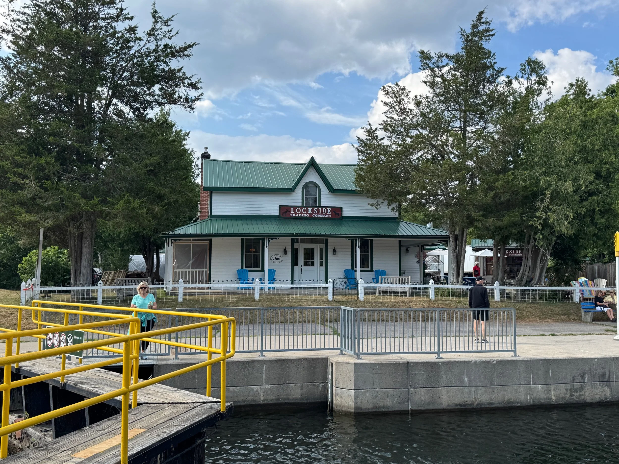 There is a nice park at the Lock and plenty of people there to visit the lock, the Trading Company and get some ice cream. The view from the boat of the water, the trees and the activity was great. We are glad we stopped.