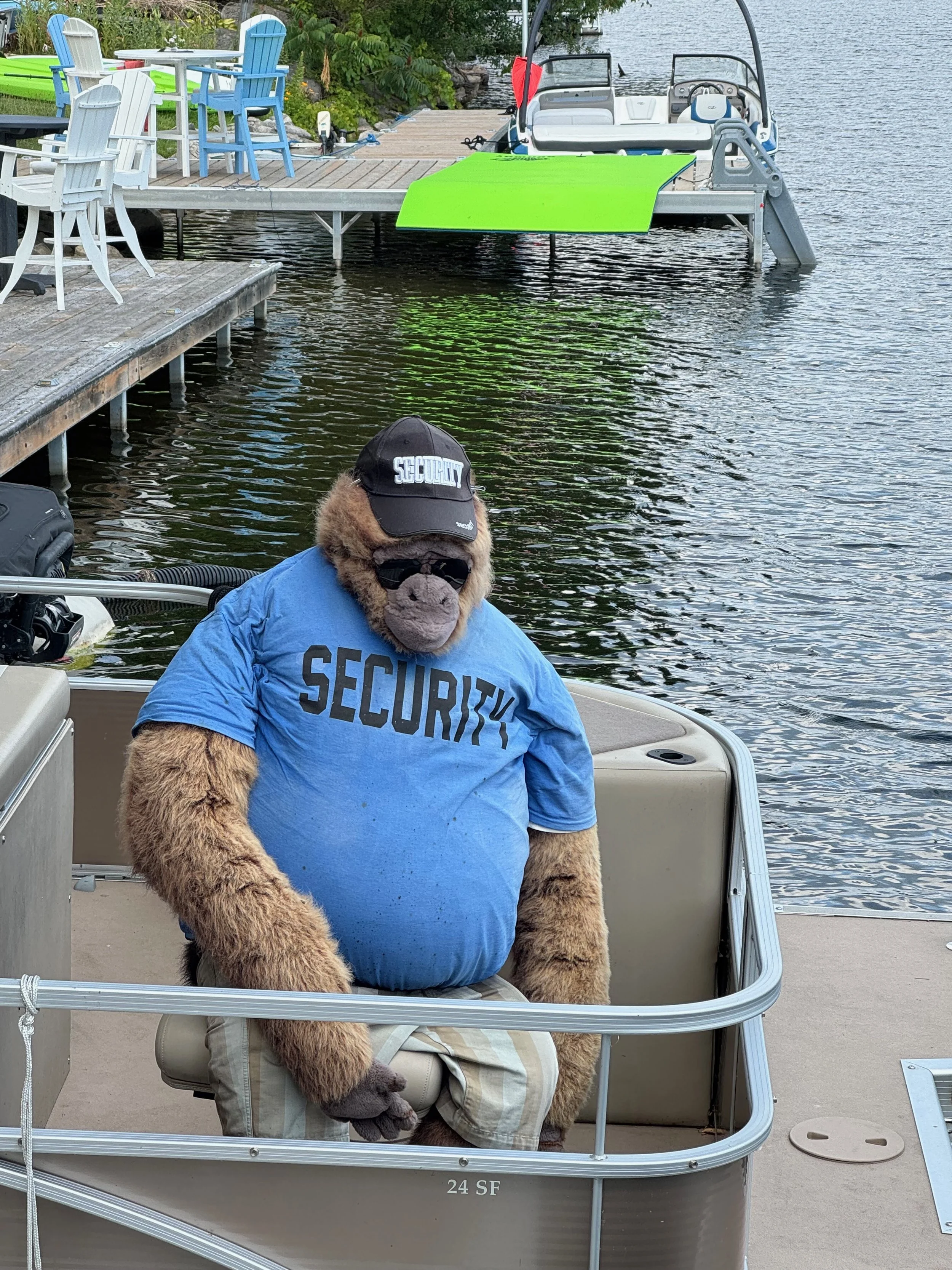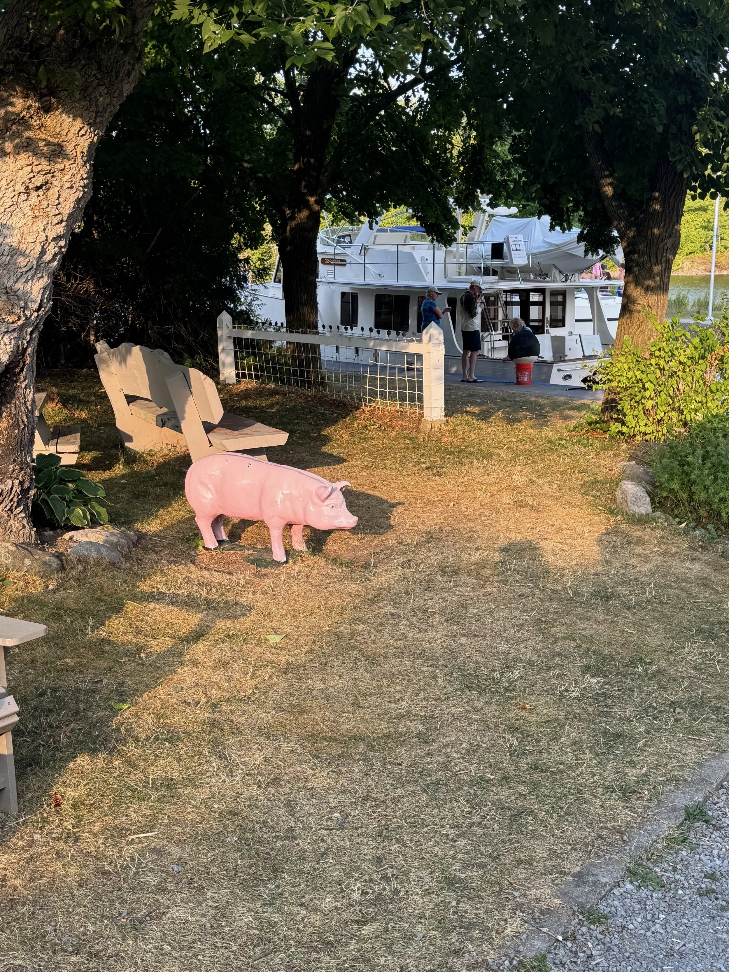 There are also homes right on the lock wall and when a boat ties up, it is right in the backyard of those homes. We met Mort, the security monkey, who was parked on the pontoon boat in the slip about 10 feet off our swim platform. Every time I looked out of the window and saw him, he startled me as I thought a real person was hanging around our boat. His owner told me that he has, in the past, hooked up fishing line that he would pull to wave Mort’s arm while boaters were passing by. Funny.